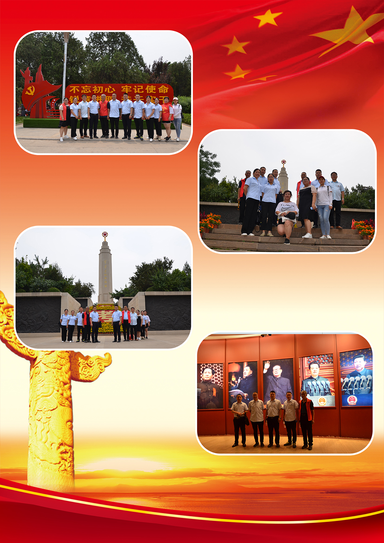 经过4个小时的车程,我们到达了“西柏坡红色基地”参观学习,虽然坐车很辛苦,下车后被现场的景色和气氛所渲染,个个兴致昂扬开启了学习之旅。